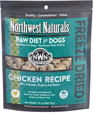 Northwest Naturals is a long-established raw food brand known for its straightforward approach to nutrition. Their freeze-dried raw nuggets are made with traditional raw ingredients, offering a balanced mix of meat, organs, bone, and essential nutrients without unnecessary complexity.