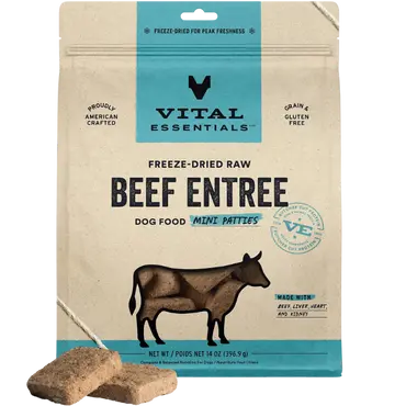 Vital Essentials focuses on simplicity and purity, making this freeze-dried raw food an excellent option for dogs with allergies or food sensitivities. Their patties are made with single-protein recipes that include raw meat, organs, and bone—without fillers, grains, or unnecessary additives.